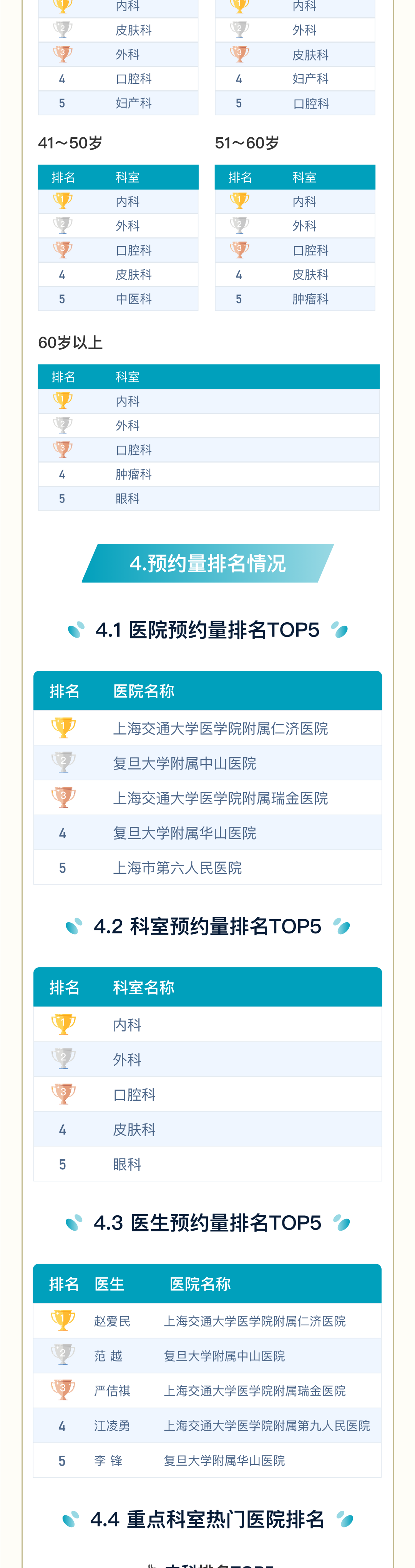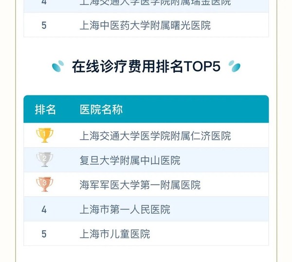 预约量排名前五医院为仁济医院、中山医院、瑞金医院、华山医院、上海六院。