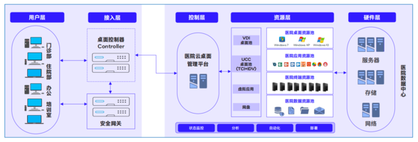 伴随着智慧医院建设进程的加快,医院桌面终端正在面临着应用环境日趋复杂化、业务规模持续增长、终端需求更加多变等带来的挑战。与此同时,不仅用户在不同场景的终端使用存在广泛的差异,医院管理者、IT运维、用户对于桌面终端的需求也各不相同。这要求医院利用创新的桌面终端方案,以改善终端应用体验,提升效率,实现高质量发展。新华三(H3C)推出了基于英特尔®超能云终端的桌面云方案。该方案在一个管理界面实现了云桌面、虚拟化、存储管理平台超融合部署与资源融合管理,能够有效简化医院IT人员的管理运维工作。同时方案实现多种架构(VDI/IDV/TCI)融合管理,覆盖医院门诊部、住院部、办公、培训室等不同场景,让医院桌面终端拥有全新体验。