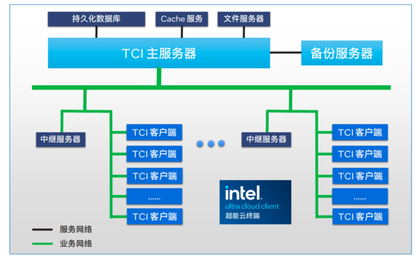 作为H3C桌面云方案的重要基础,英特尔®超能云终端包括TCI与IDV架构,其中,TCI是一种预启动级系统管理解决方案,没有虚拟化层,并且独立于任何其他较大的软件堆栈,客户端将由服务器从裸机状态进行初始化,在预启动级使用操作系统映像进行部署,然后启动操作系统,随后由TCI服务器进行管理。TCI架构具备账户个性化配置、本地计算能力强大、灵活集中管理、外设兼容性优异等优势。